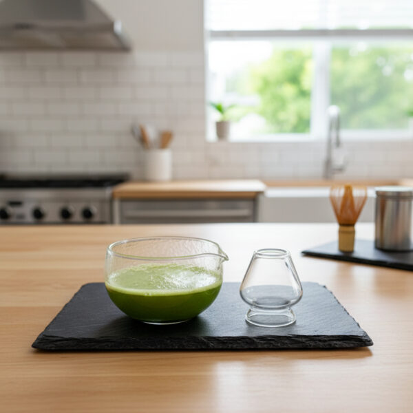 For the perfect matcha! A glass, embossed bowl and a holder to keep the whisk (chasen) in its correct shape. Capacity 350ml and a spout for easy serving. The whisk holder is ideal for all authentic chasens.